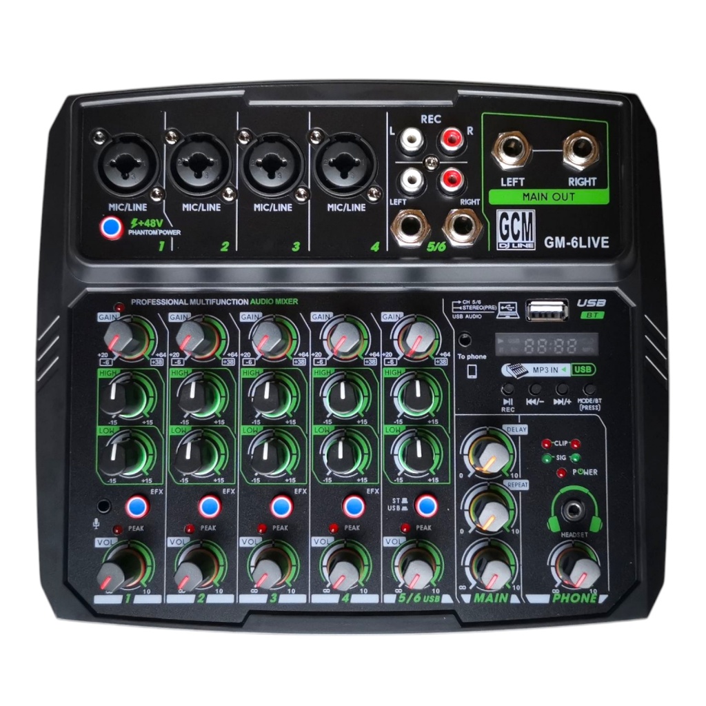 Calidad Profesional Asegurada: Disfrute de un sonido nítido y potente gracias a su alimentación fantasma de 48V integrada, esencial para micrófonos de condensador de estudio. Además, cuenta con ecualización de agudos (HIGH) y graves (LOW) por canal para esculpir el tono perfecto.