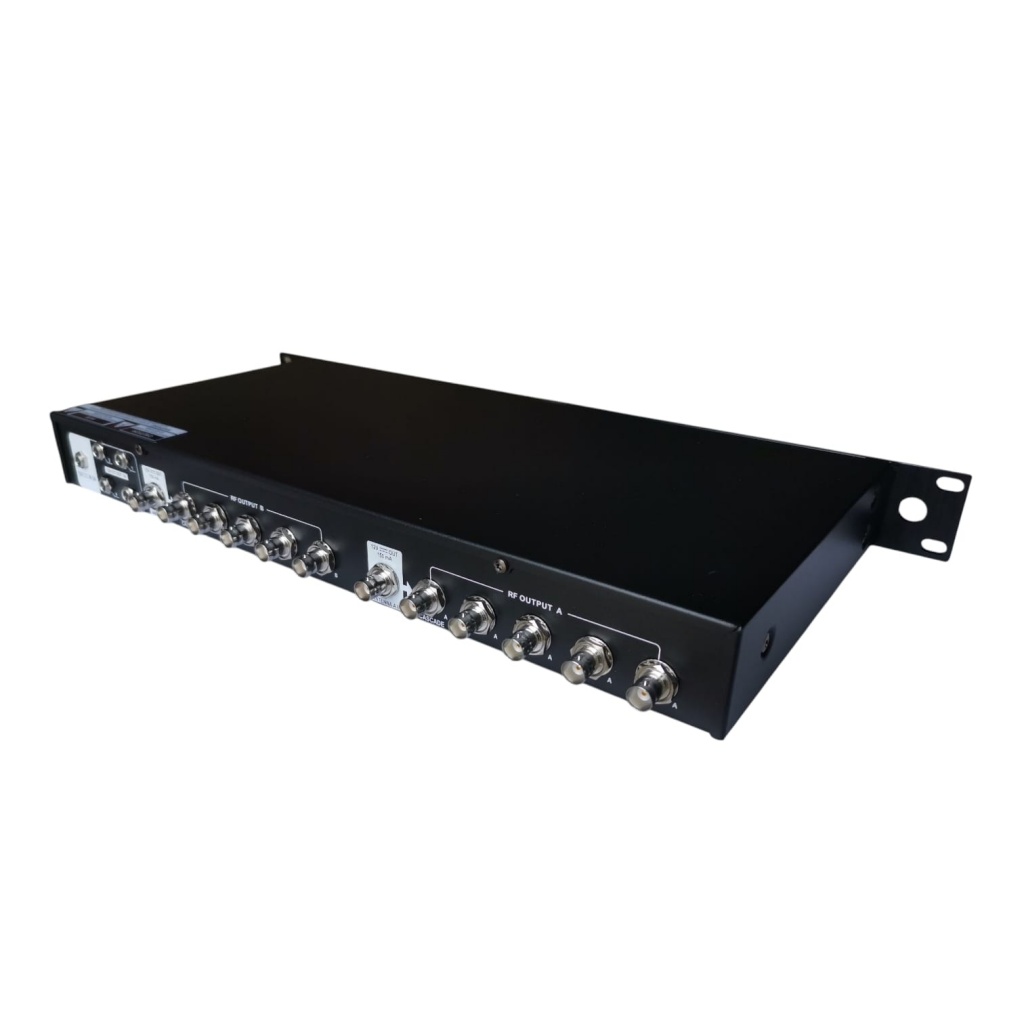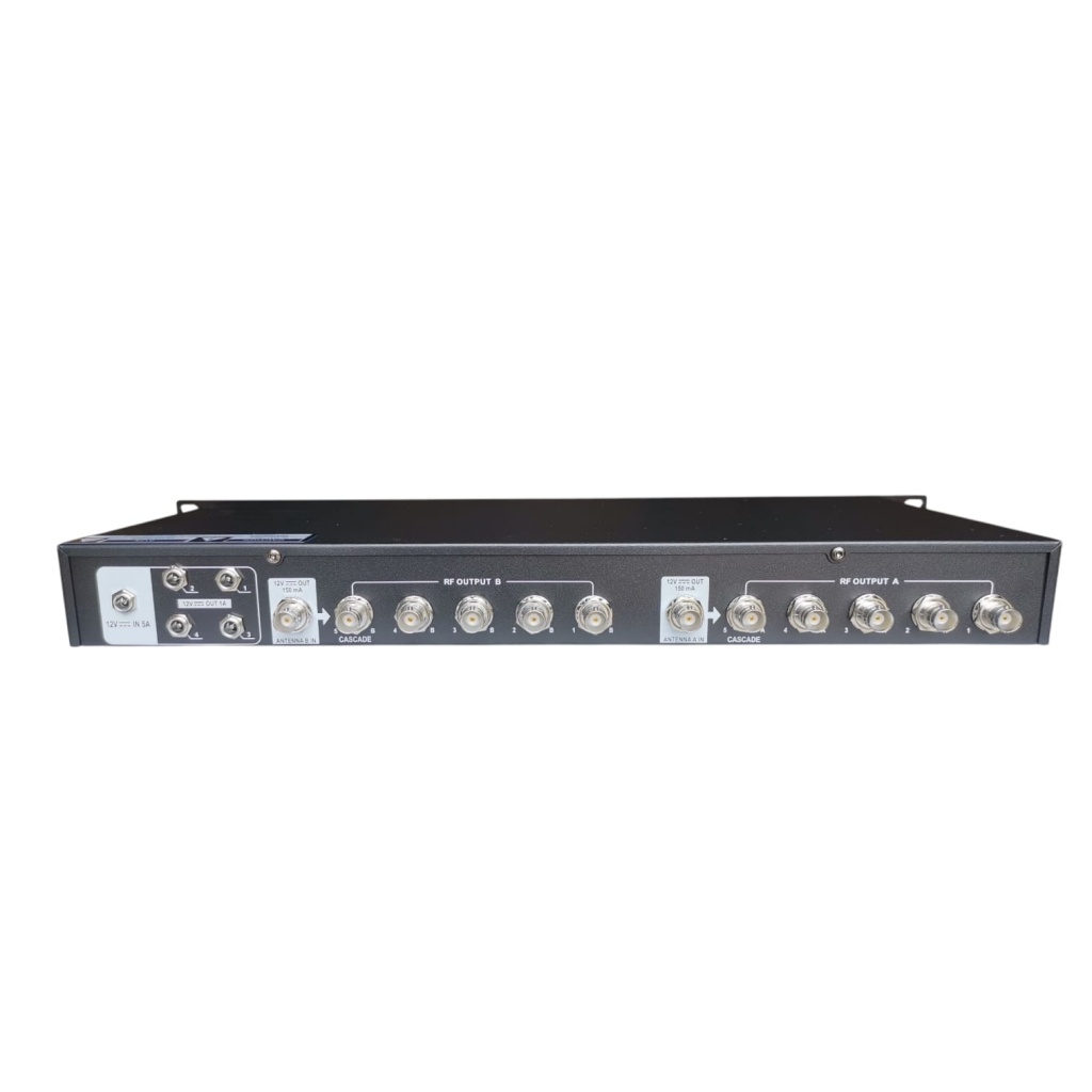 Incluye salidas RF A y B y puertos de cascada para expansión a otra unidad.
