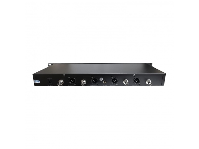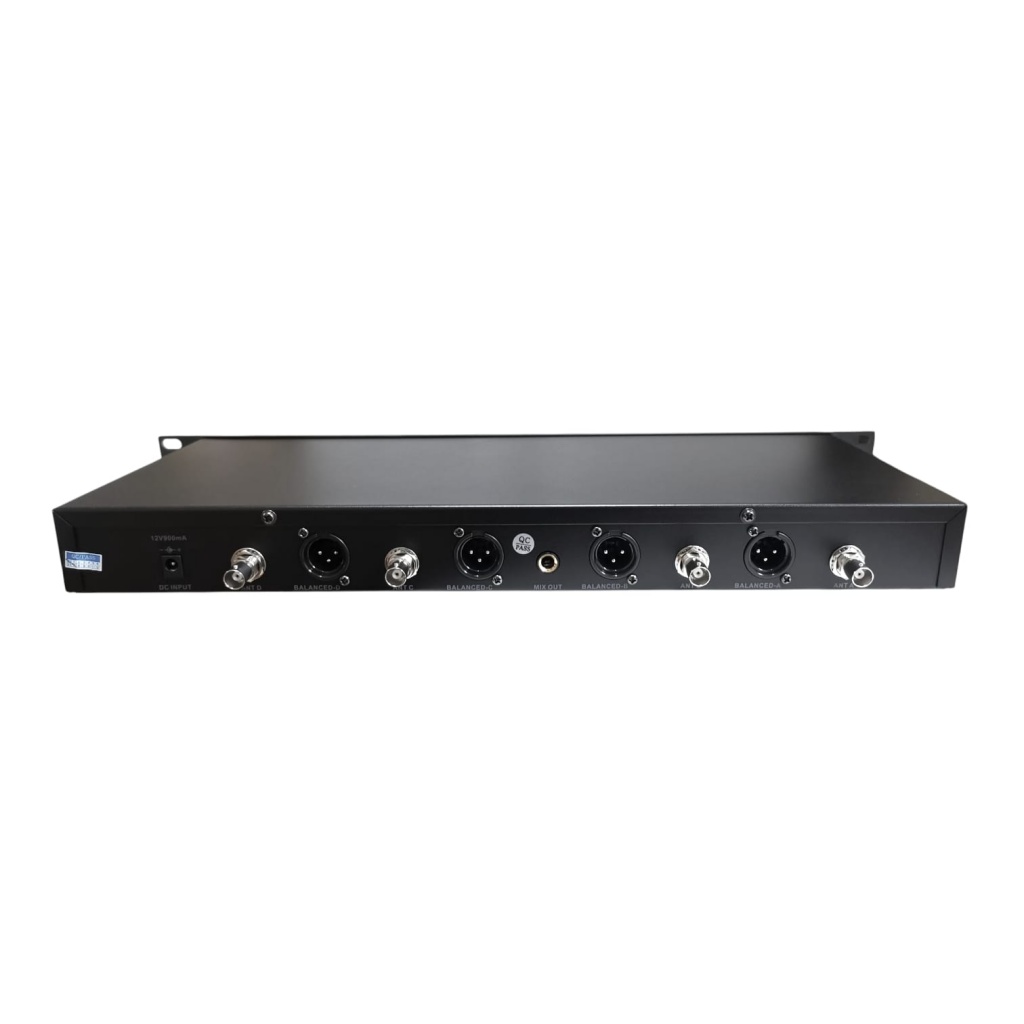 Con visores individuales, con informacion de frecuencia, bateria, señal RF y AF.