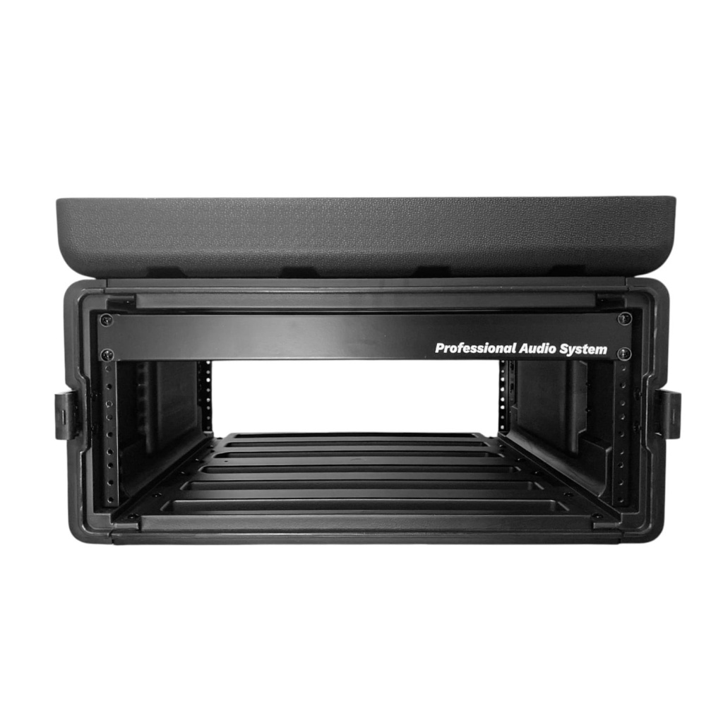 Fabricado en material de alta resistencia con estructura reforzada, este rack brinda una excelente protección contra golpes, vibraciones y transporte frecuente. Su diseño incluye rieles internos metálicos estándar para el montaje seguro de amplificadores de potencia, procesadores, ecualizadores u otros equipos de rack.