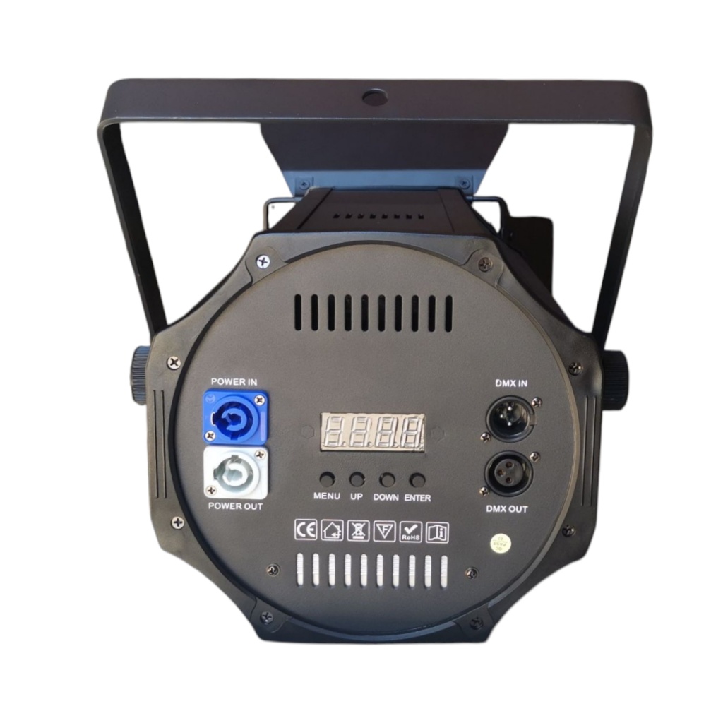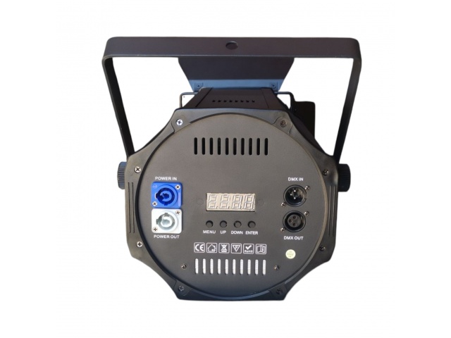 Dirección DMX: presione la tecla MENU para ingresar al modo de dirección DMX (A001-A512), use las teclas arriba/abajo para seleccionar la dirección y presione ENTER para guardar.