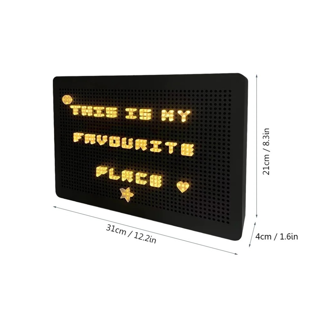 Alimentación: Cable USB o 6 pilas AA (no incluidas). Tamaño del artículo: 31 x 21 x 4 cm (12,2 x 8,3 x 1,6 pulgadas). Tamaño del paquete: 32 x 23,5 x 7,5 cm (12,6 x 9,3 x 3 pulgadas). Peso del paquete: 710 g (1,57 lb). Contenido del paquete: 1 caja de luz, 158 accesorios (letras, números y símbolos). 1 cable USB. Tamaño A4
